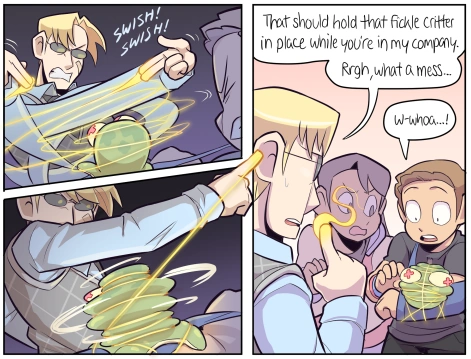 After defeating Gorf at the Corner Store, Max and Ed Burger go outside to meet Isabel, who has collected several Doctopi to "drain the pain"[2]. After getting one stuck to his face, Max squeezes the Doctopus in his fist as Ed and Isabel leave before letting it go into the night.